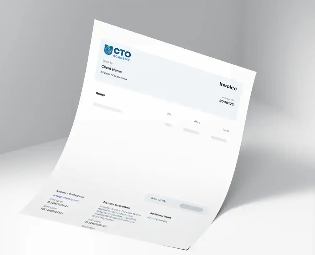 After enrolment you’ll receive an invoice to forward directly to your finance team. Add your company name at checkout if required. If you need any help contact support@cto.academy and we will tailor your invoice